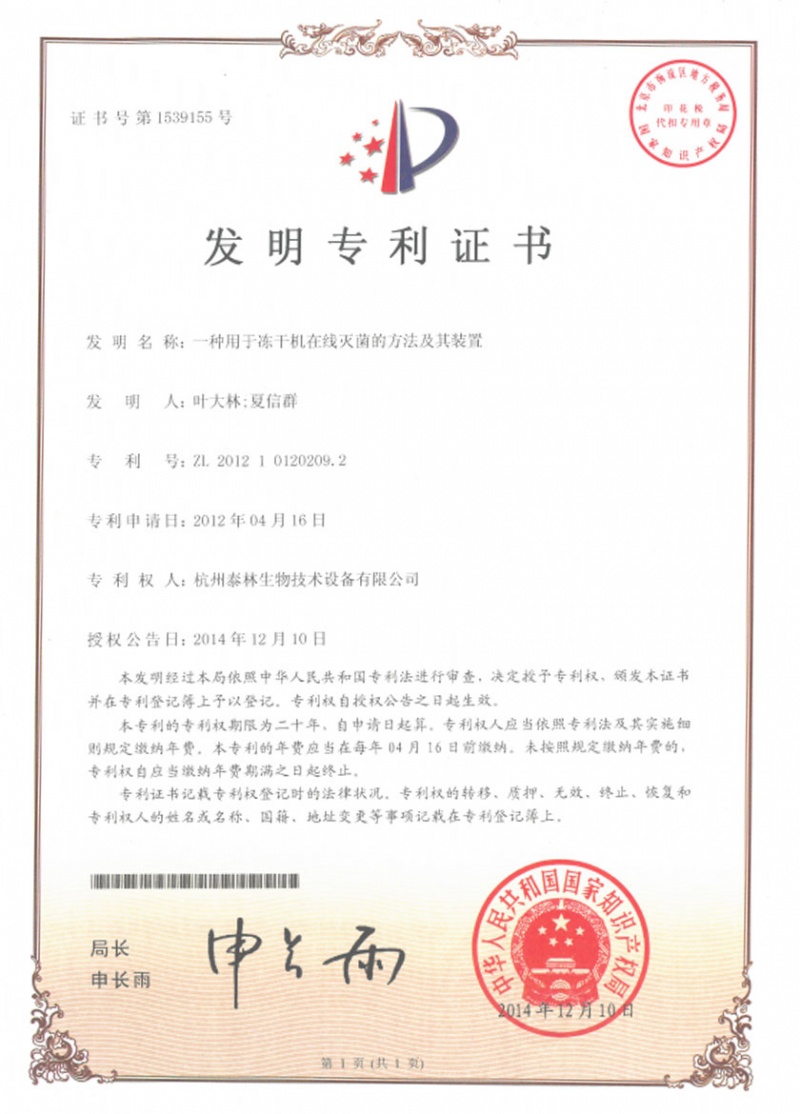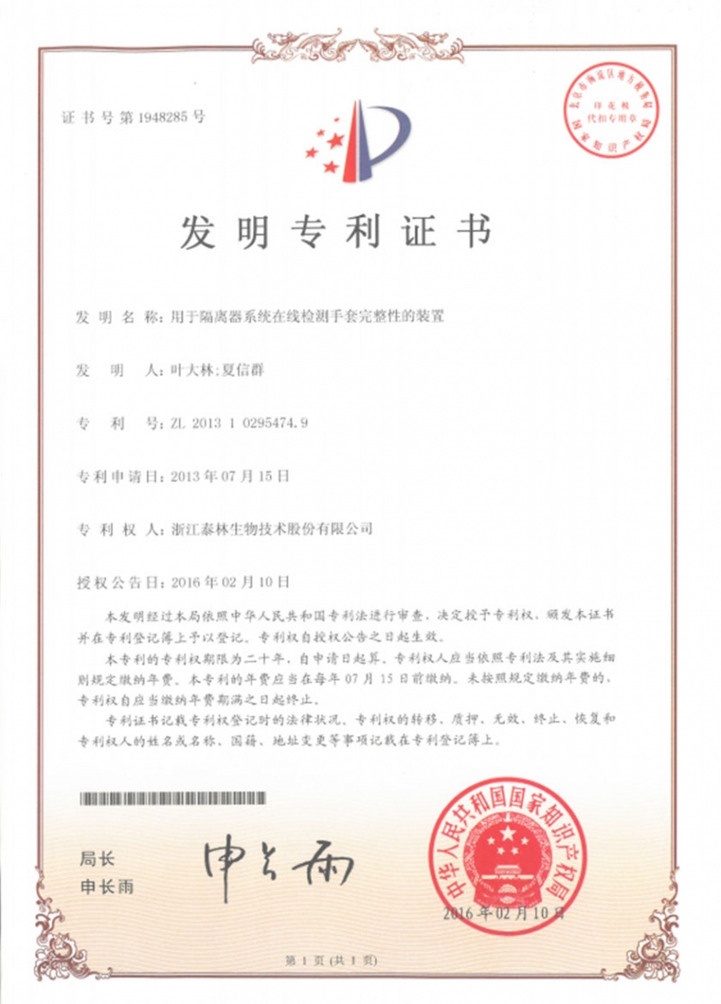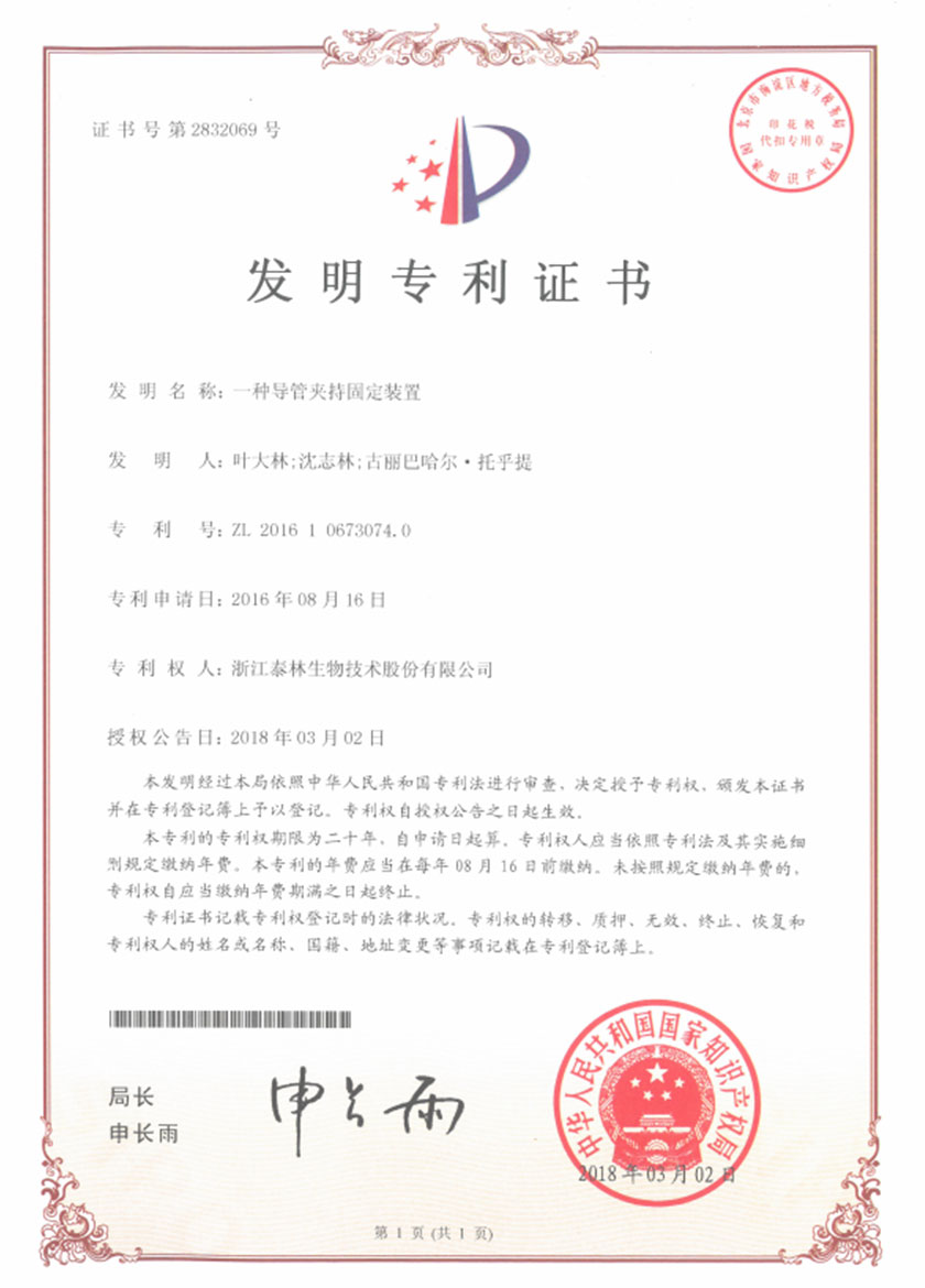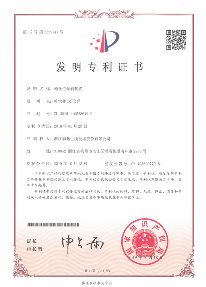 泰林生物擁有國(guó)家專利200多項(xiàng),其中發(fā)明專利19項(xiàng) 。